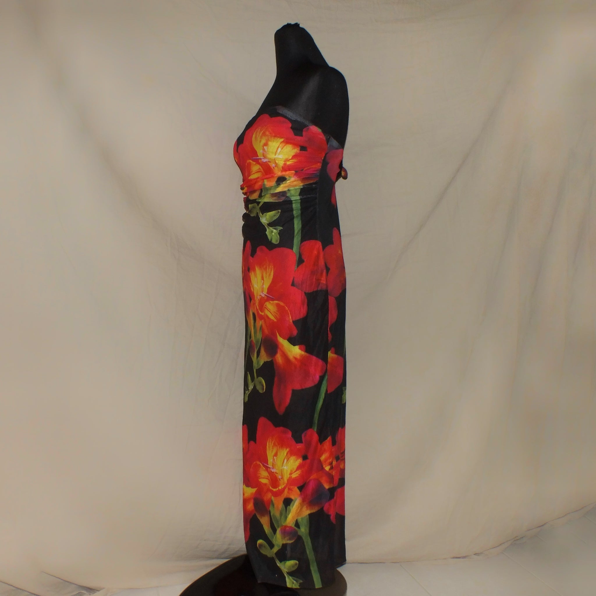 Hawaiian flower pattern tube long dress (L)