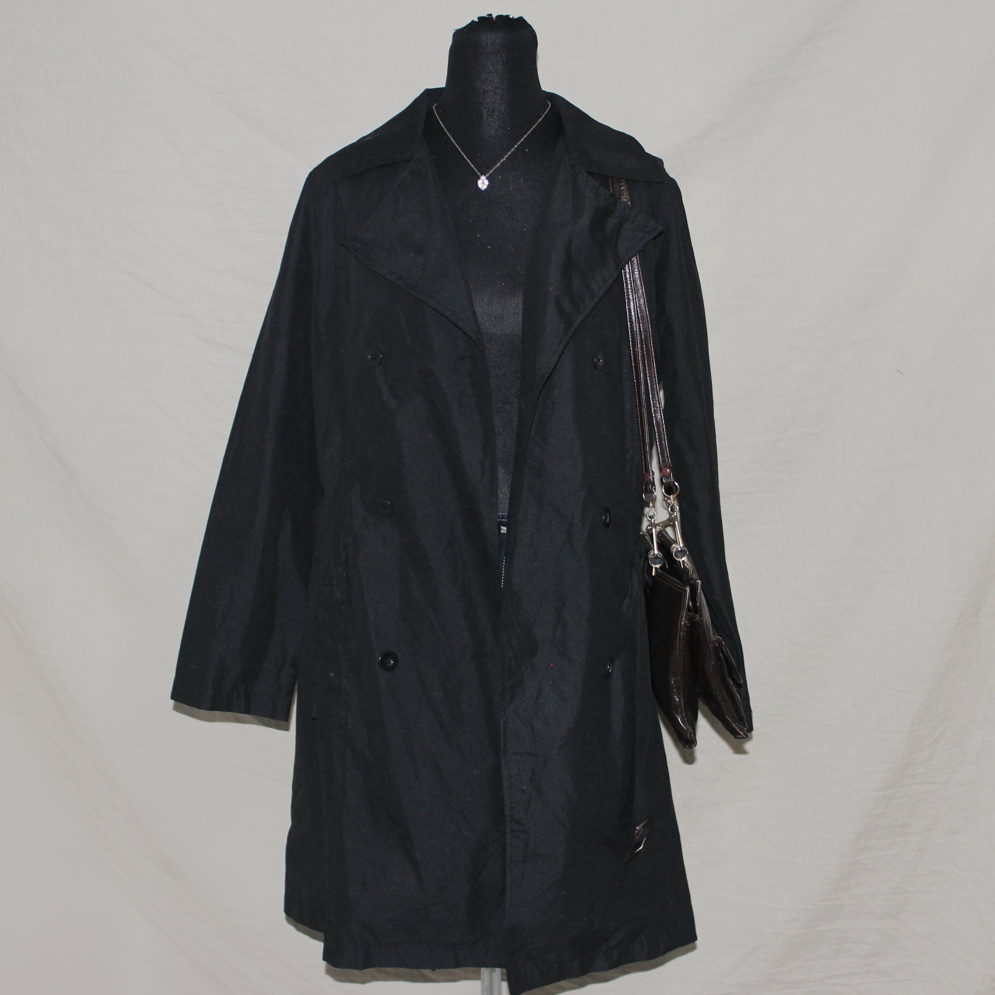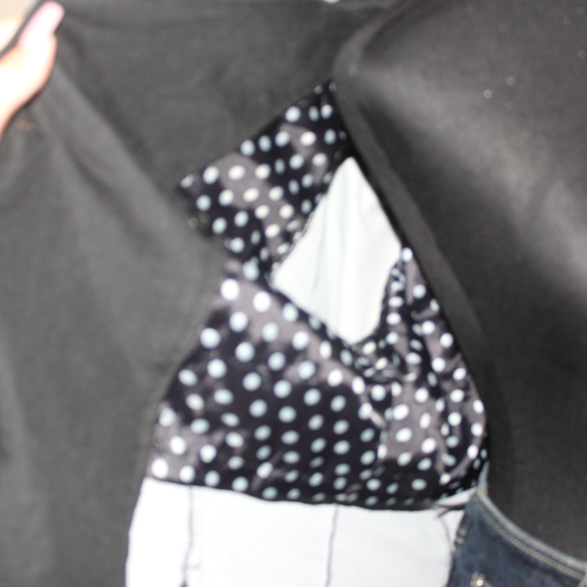 Black polka dot interior trench coat (M)